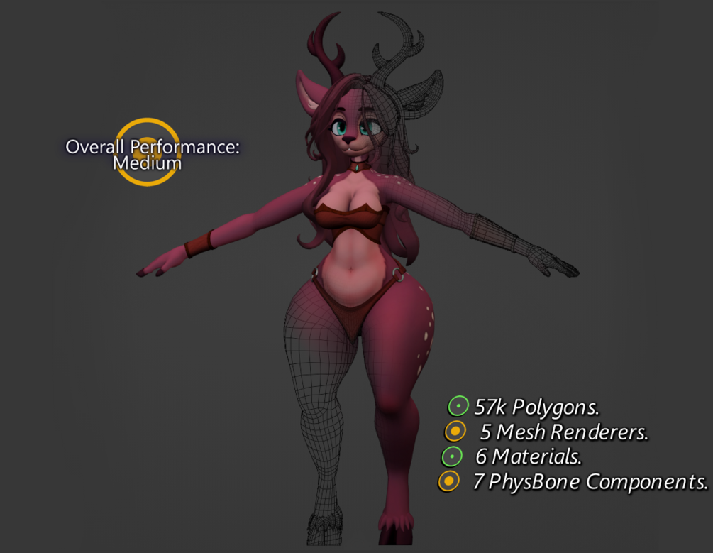 🟢 Note: She can easily be optimized to be Good Performance if you're familiar with Blender and are comfortable with combining meshes.